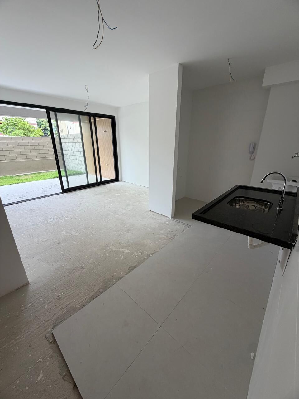 -Cozinha, sala de estar, varanda e jardim privativo