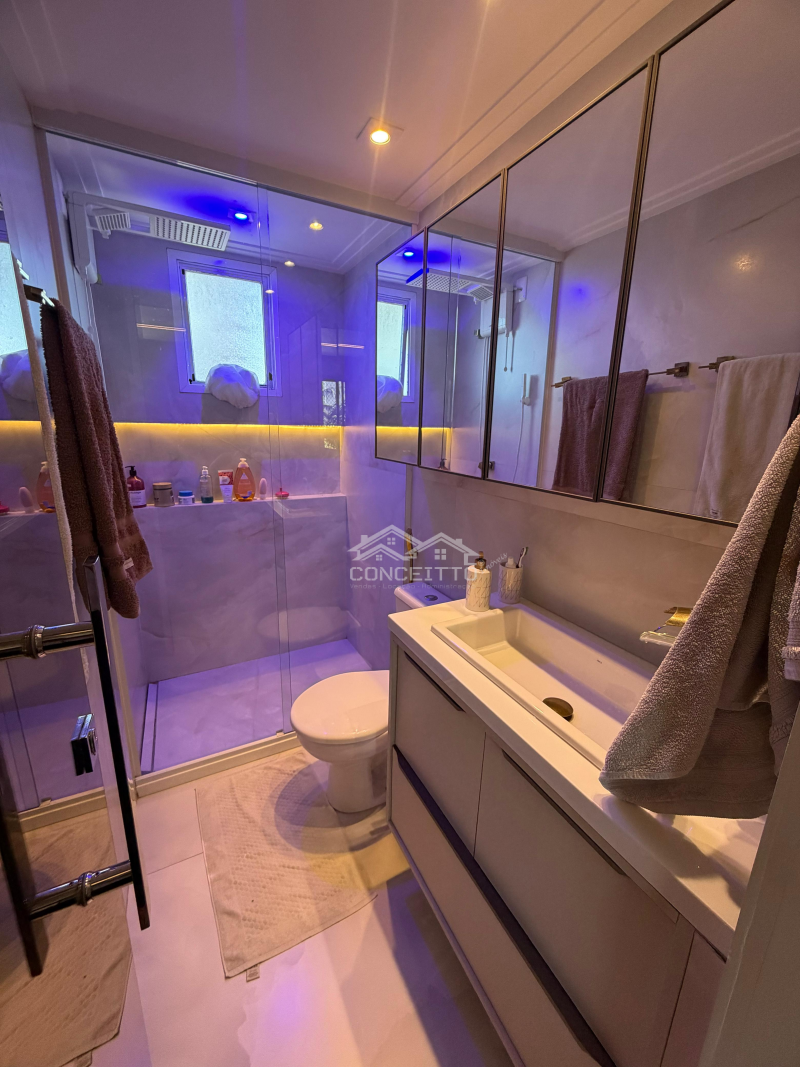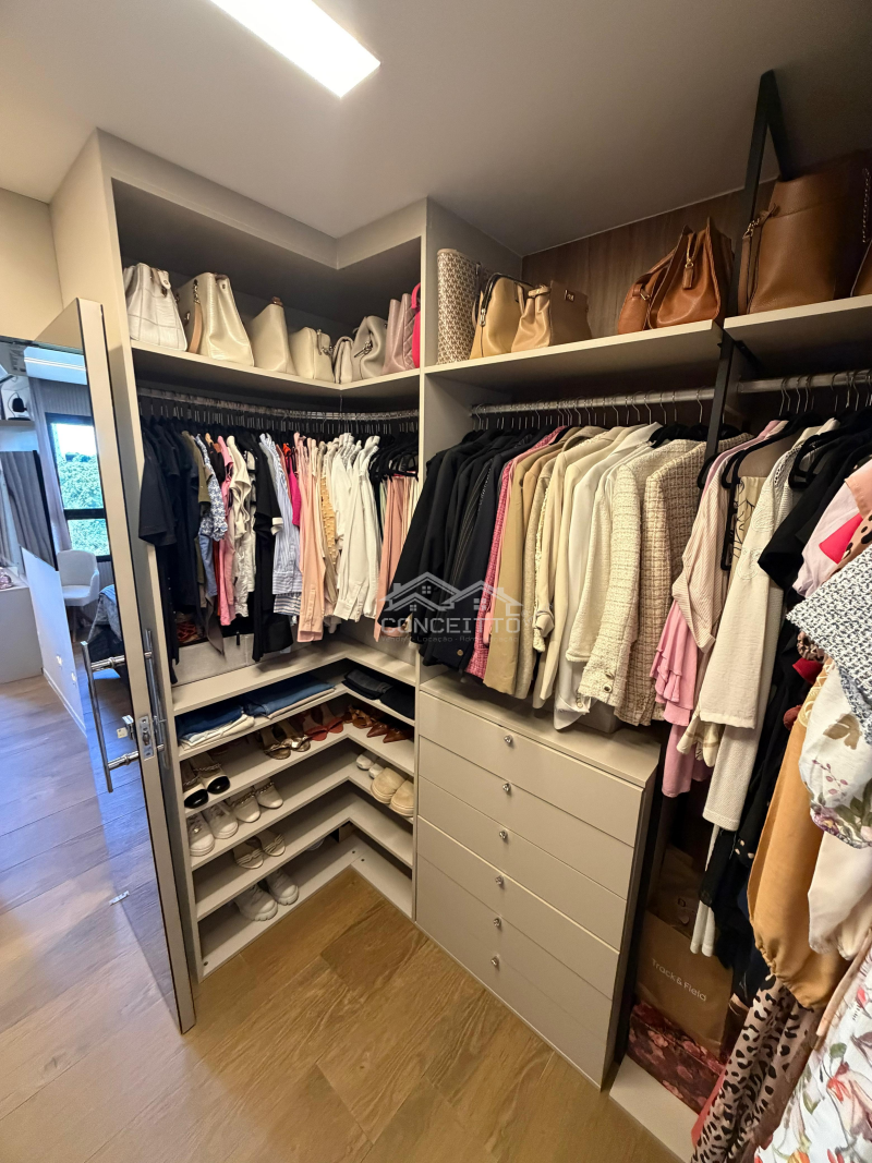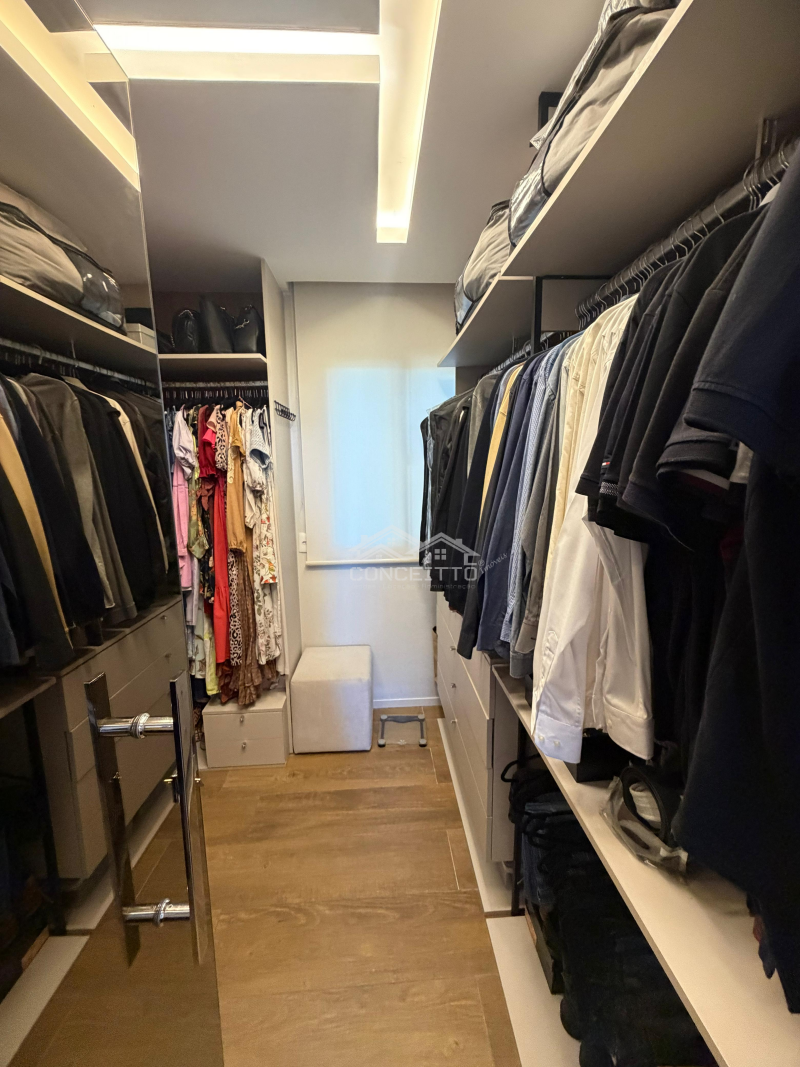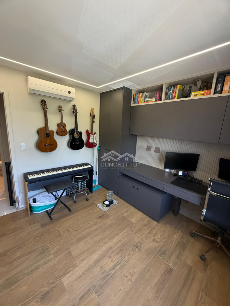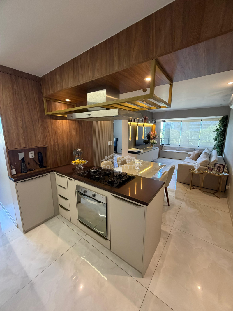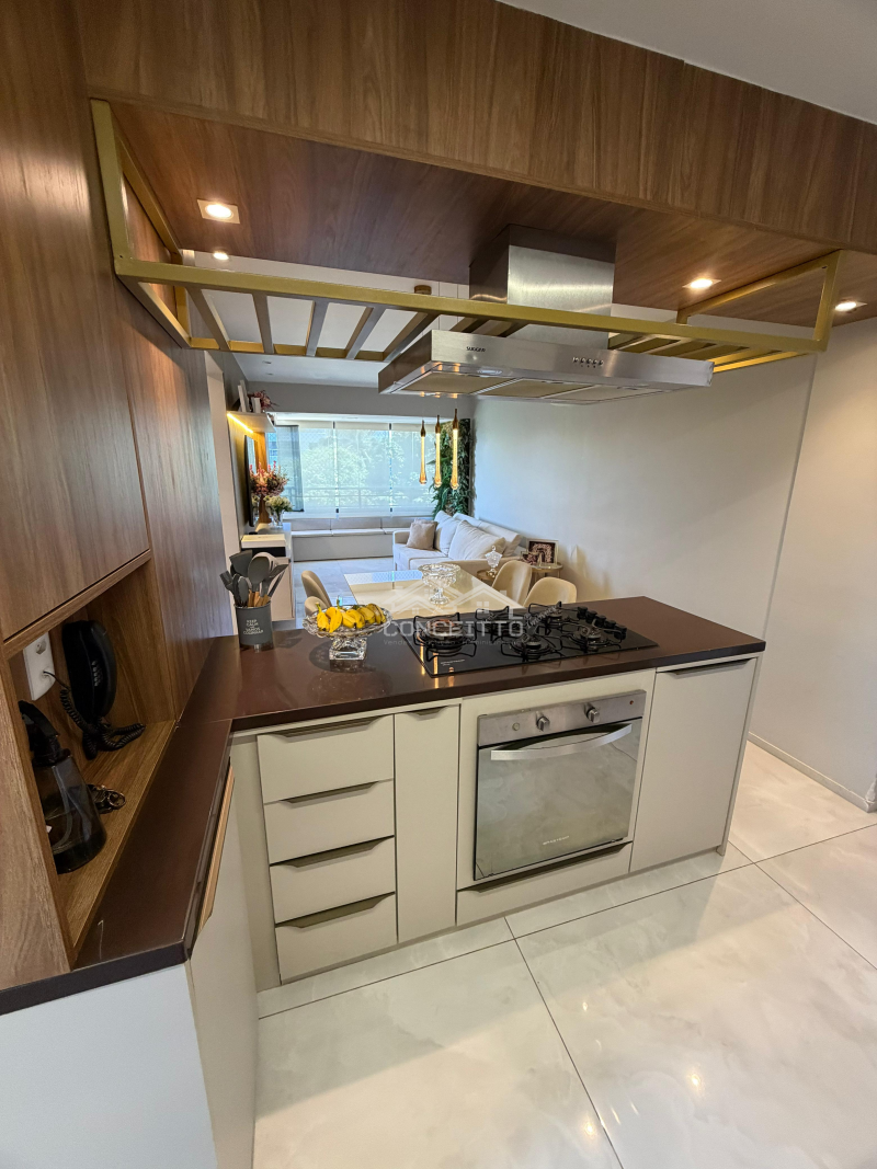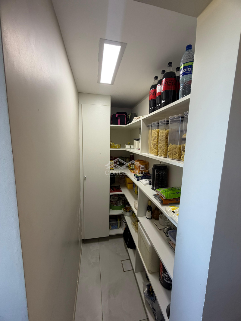 O imóvel possui 3 quartos revertidos para 2, sendo 1 suíte com closet, sala ampla integrada à cozinha em conceito aberto, despensa, área de serviço, banheiro social e armários planejados em todos os ambientes. Possui 2 vagas de garagem, sendo 1 coberta e 1 descoberta.