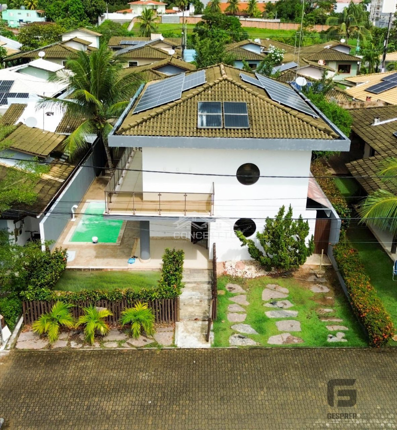 Casa com 5/5 sendo 2 quartos sendo suíte canadense. Painéis fotovoltaicos permitem economia real na conta de energia. Pavimento inferior conta com sala ampla e arejada, suíte térrea, quarto térreo climatizado e com acesso ao espaço gourmet, cozinha com móveis planejados e fogão de 5 bocas, balcão que faz integração da cozinha com a sala; banheiro social.