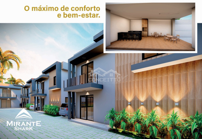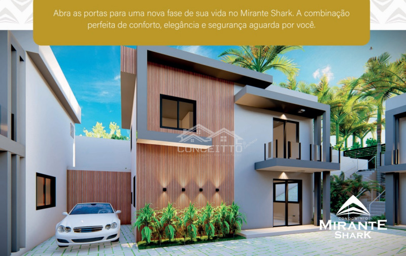 Casa no novíssimo condomínio Mirante Shark, com 4/4 sendo 1 suíte, design moderno com acabamento em alto padrão, localização privilegiada, apenas 120m da paradisíaca praia de Villas do Atlântico, sala ampla, cozinha, quarto térreo, área de serviço, suíte com varanda, além de outros 2 quartos. Condomínio com portão eletrônico, área de convivência com churrasqueira e chuveiro.