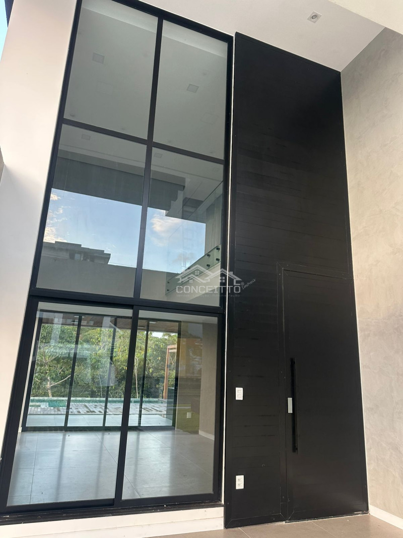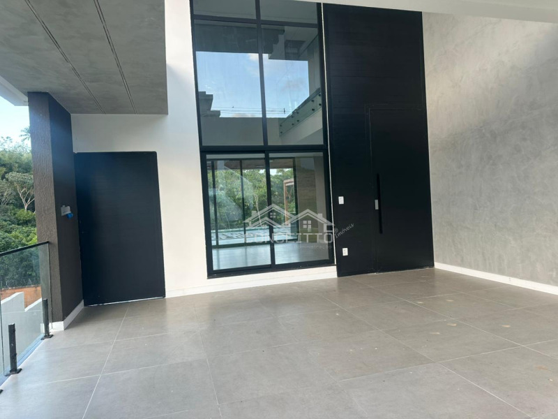 Casa triplex em estilo contemporâneo com 4 suítes, imóvel de alto padrão com acabamento primoroso, sala ampla com pé direito alto, cozinha, área de serviço, escritório privativo, suítes com área para closet, espaço gourmet com churrasqueira, ilha em granito, piscina com deck em madeira, pergolado, cercada de natureza e paz. A casa possui diferenciais como: carregador para carros elétricos, fechadura digital, sala de cinema e jogos no pavimento inferior.