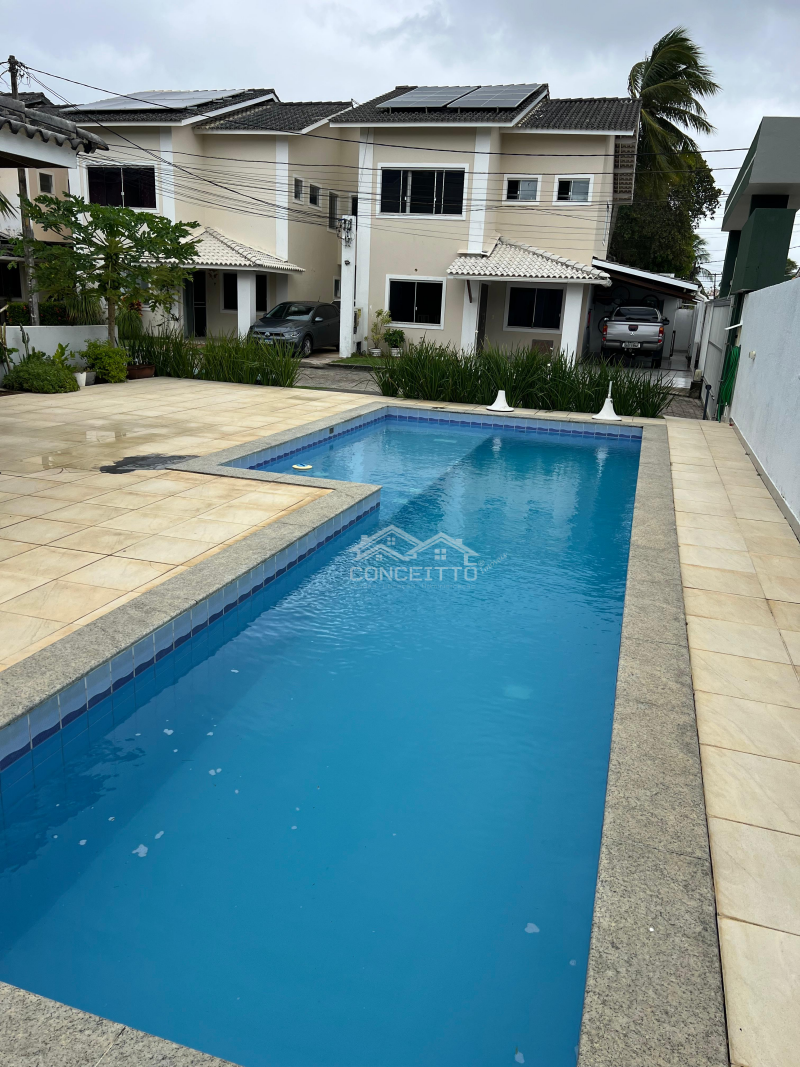 Condomínio com portão eletrônico, piscina e churrasqueira de uso comum. Acesso ao rio Joanes por meio de rampa náutica na rua do condomínio.