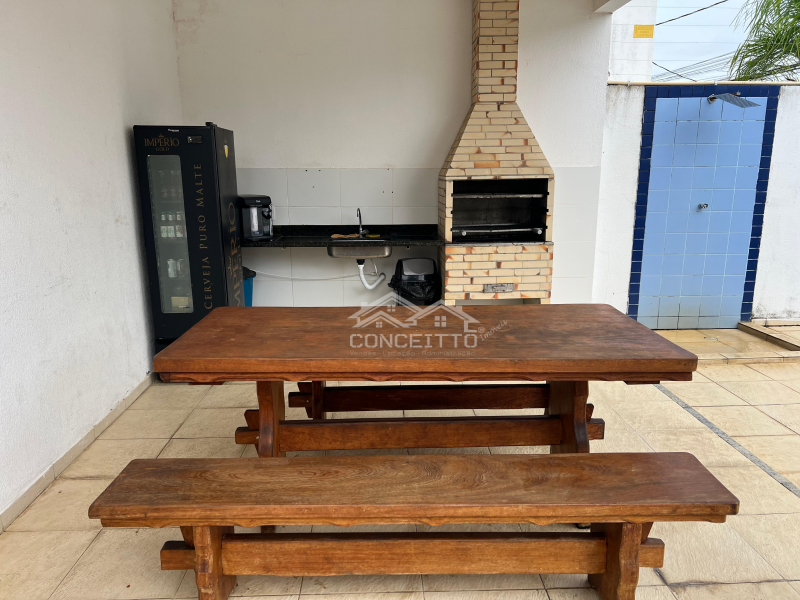 Área gourmet com churrasqueira, forno a lenha, pia e balcão com armários, chuveirão externo. Conta também com um banheiro externo, balcão e área de lavanderia. Vagas para 2 carros sendo uma delas coberta.