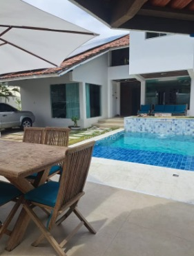 Casa em Vilas do Atlântico em alameda com guarita, recém reformada, com 4 quartos sendo 3 suítes (duas suítes com closet), piso em porcelanato, sala com pé direito diferenciado e em 3 ambientes com cozinha integrada, parede decorada em gesso 3D, teto com rebaixamento em gesso com iluminação indireta personalizada, varanda, cozinha ampla com ilha em mármore branco, área de serviço, banheiros com visual moderno em porcelanato branco, jardim de inverno, dependência, cozinha na parte externa, quarto com ar-condicionado, quintal espaçoso com piscina e quiosque para área gourmet. Casa fica próxima do parque ecológico de Lauro de Freitas (área de proteção ambiental), poucos minutos da praia de Villas do Atlântico e barracas famosas como a do Buraco da Velha, é possível ir a pé a escolas, padaria, supermercados, pizzarias, bares e restaurantes, pracinha com brinquedos, pet shop, academia, igreja, hortifruti, peixaria, cartório.