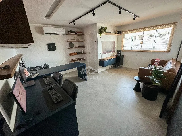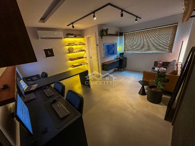 Sala reformada na melhor localização de Vilas do Atlântico, com 27m2, projetos de planta e luminotécnico em estilo contemporâneo elaborado por arquiteta, possui piso em microcimento importado, móveis planejados modernos e funcionais, mesa ampla em formato de T, gabinete, grandes armários, rack, prateleiras flutuantes com Led embutido e armário ripado no banheiro. Arcondicionado novíssimo 18mil Btus marca Gree, persiana com sistema inteligente, parte elétrica com fiação renovada, cerca de 20 tomadas incluindo 220V, iluminação conta com 2 tipos, tanto na sala como no banheiro (luz branca mais fria como principal e luz amarela mais quente como ambiente e acolhedor). Trilhos com spots de leds e luz tubular no gesso que foi todo refeito com uma cava trazendo charme e requinte.