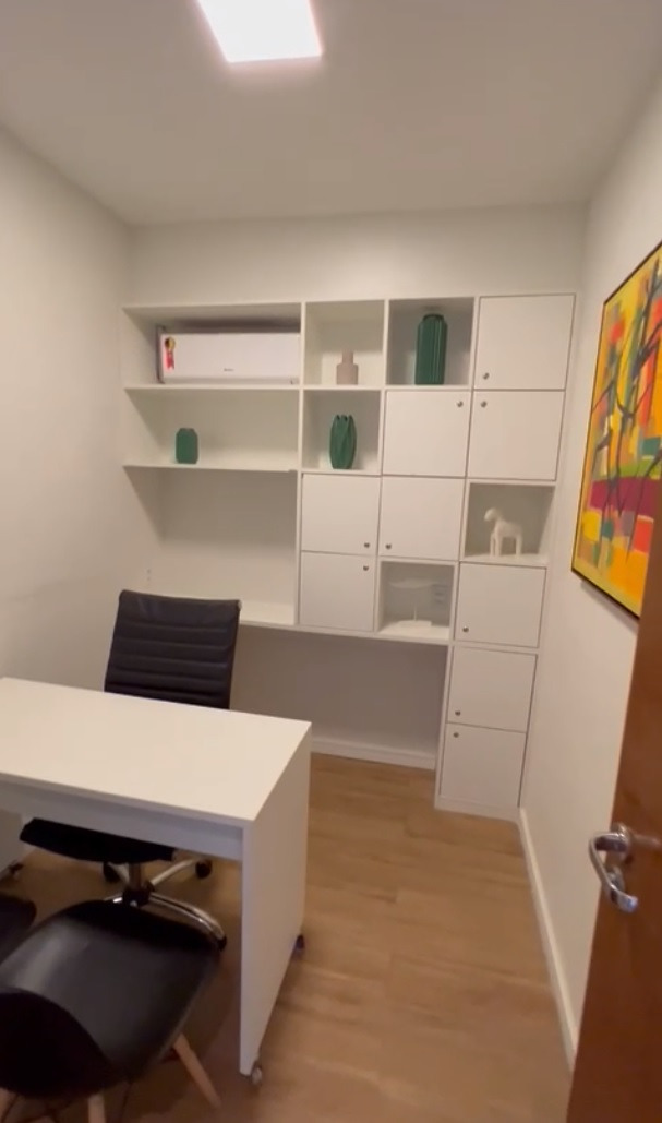Consultório com 33 m2, 100% mobiliado e climatizado, na melhor localização comercial de Buraquinho, Estação Vilas Shopping, Priscila Dutra. Possui fechadura eletrônica, recepção com cadeiras e almofadas, máquina de café; 3 consultórios com móveis planejados, quadros decorativos, mesas e cadeiras para consultas, poltrona especial para atendimento personalizado, pia, macas e luminária de piso. Climatização com 4 aparelhos split.