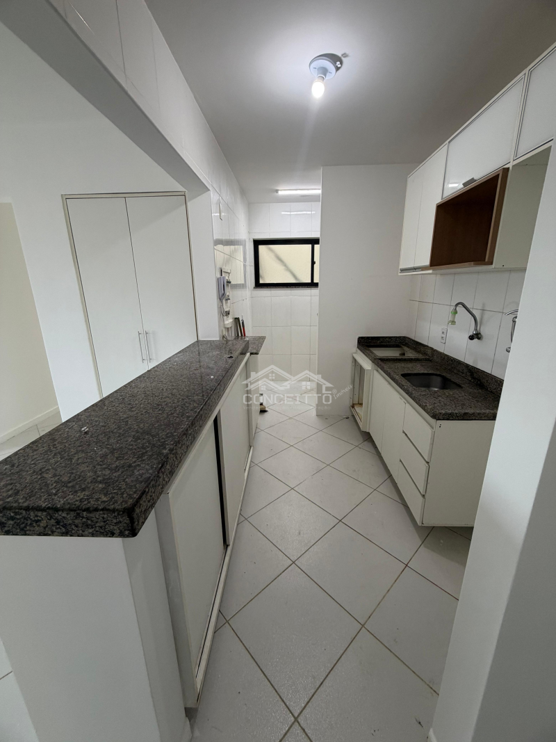 Apartamento com 2/4 sendo 1 suíte, nascente, varanda com Reiki, cozinha com armários planejados, suíte com móveis sob medida, banheiros com armários.