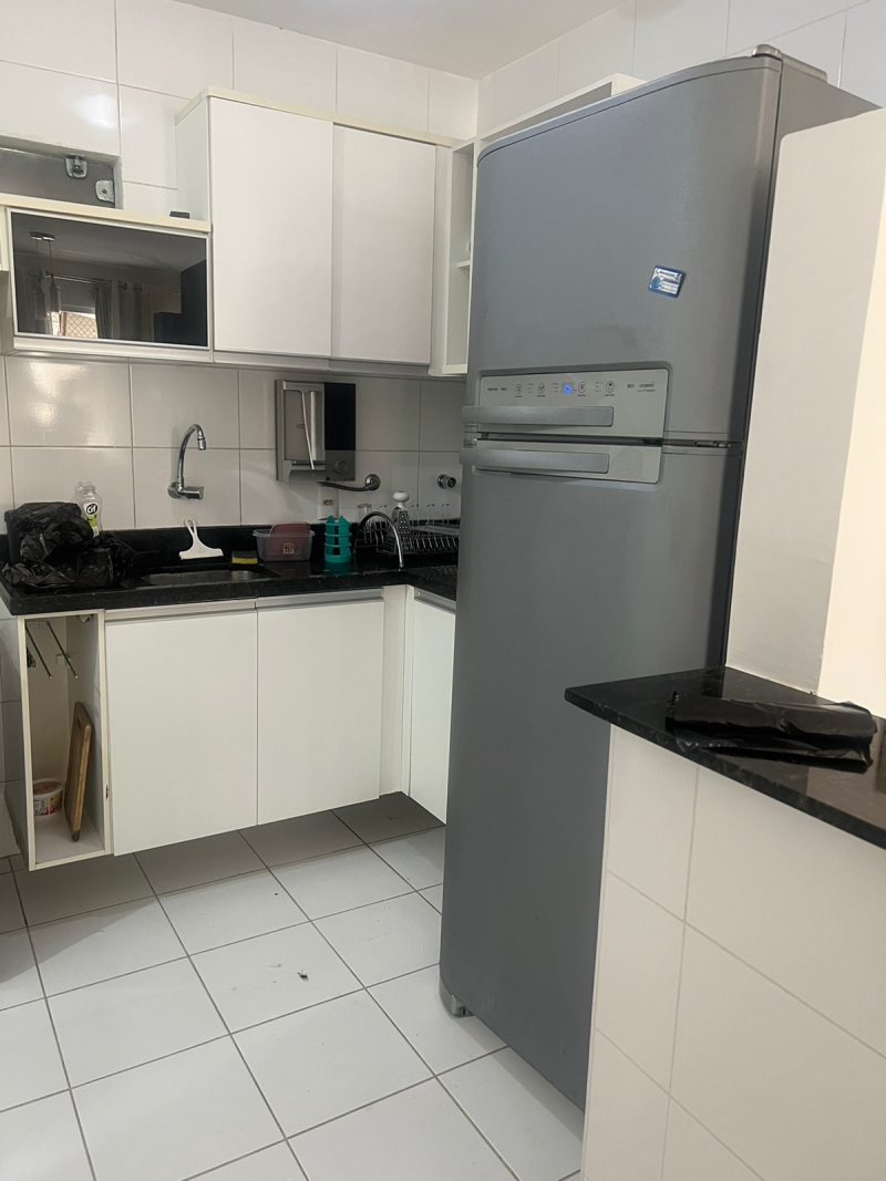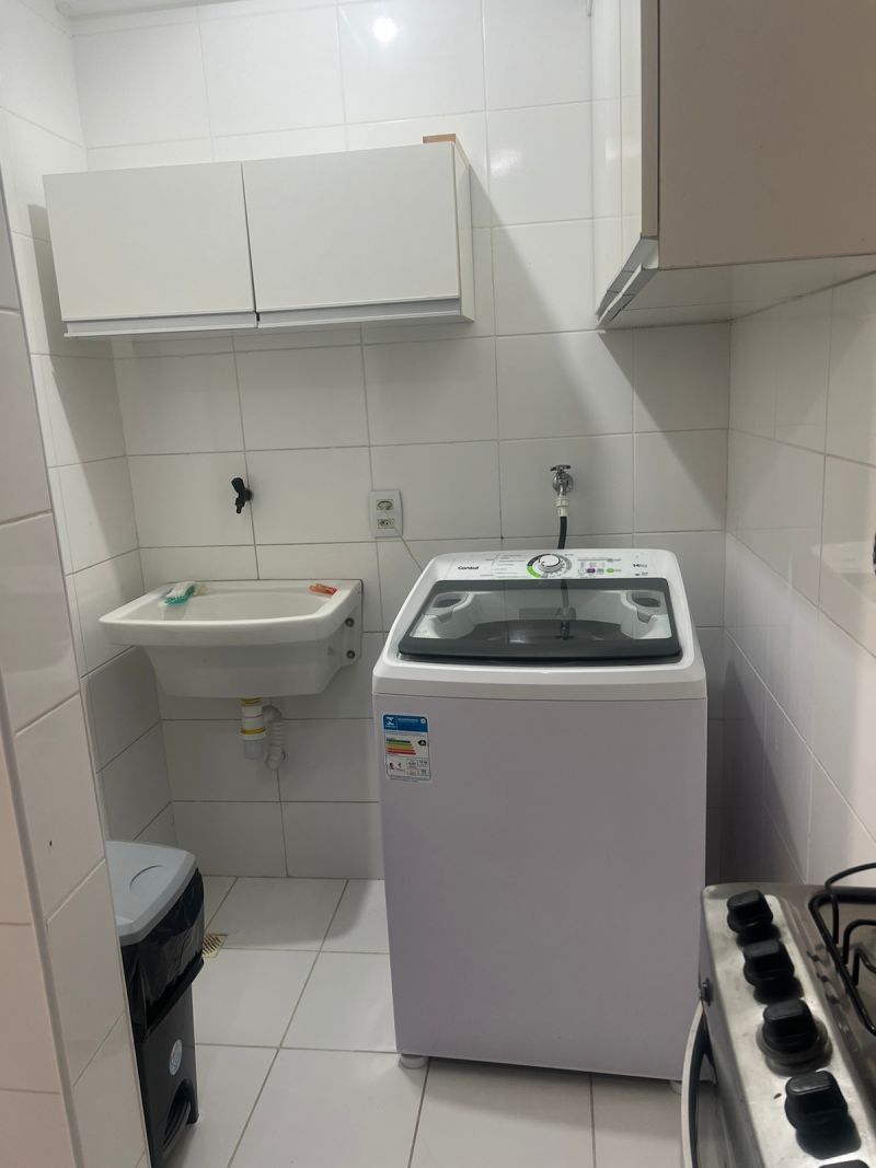 Apartamento 2/4 sendo 1 suíte, mobiliado, sala ampla com piso em porcelanato e varanda, mesa com tampo de vidro e 4 cadeiras, sofá, painel e Rack, cortinas; Cozinha com móveis planejados modernos e funcionais, geladeira, fogão, filtro; àrea de serviço com armários e máquina de lavar; Suíte com móveis sob medida e arcondicionado, quarto com armários planejados e gabinete de estudo, banheiros com box blindex.